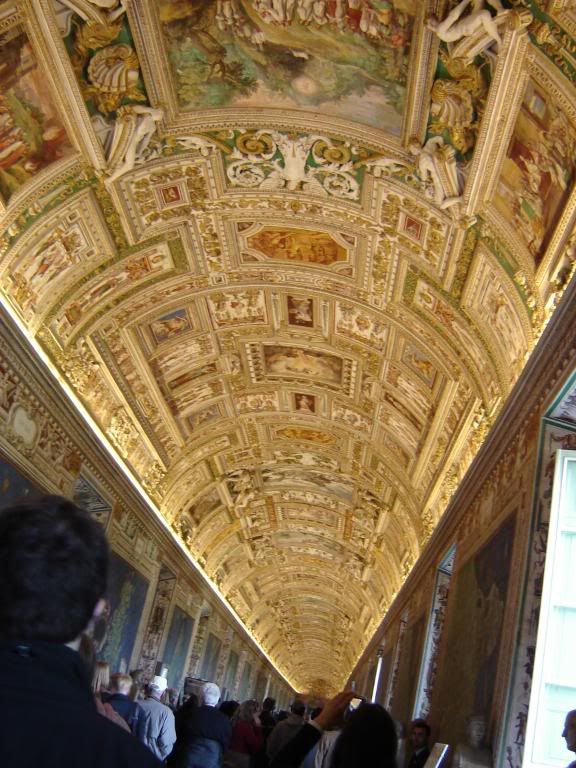 The only things that I really remember were the ceilings and one picture of Jesus in particular. The ceilings in some of these halls…there was just so much detail! I guess you could call it busy but, really, they were gorgeous. Heh, I loved the ceilings far more than any of the paintings, statues, and tapestries we saw that day. They were, for lack of a better word, amazing. The painting that I recall depicted Jesus coming out of the tomb. Normally, that wouldn’t be that significant, but it was done with the same effect that the Mona Lisa has. As in, the subject is looking out at you and, no matter where you move, his eyes look like they’re following you. It’s kind of creepy and, yes, I do have a picture of it that depicts the effect pretty well. It’s so weird to actually be there with this huge Jesus watching you. I’m tempted to use the word profound to describe it, so I will.